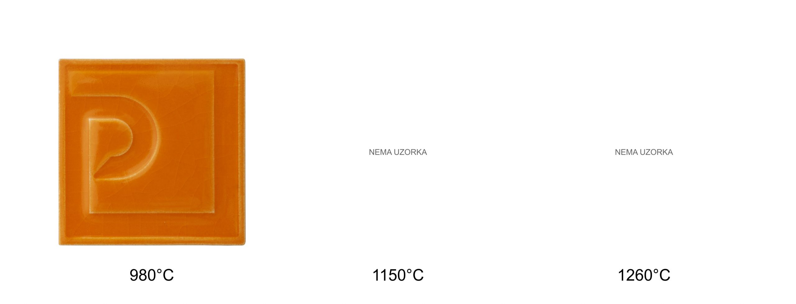 Glazura je namijenjena dekorativnoj i uporabnoj keramici. Zbog varijabilnosti boje i efekta preporučuje se probno pečenje prije serijske proizvodnje.