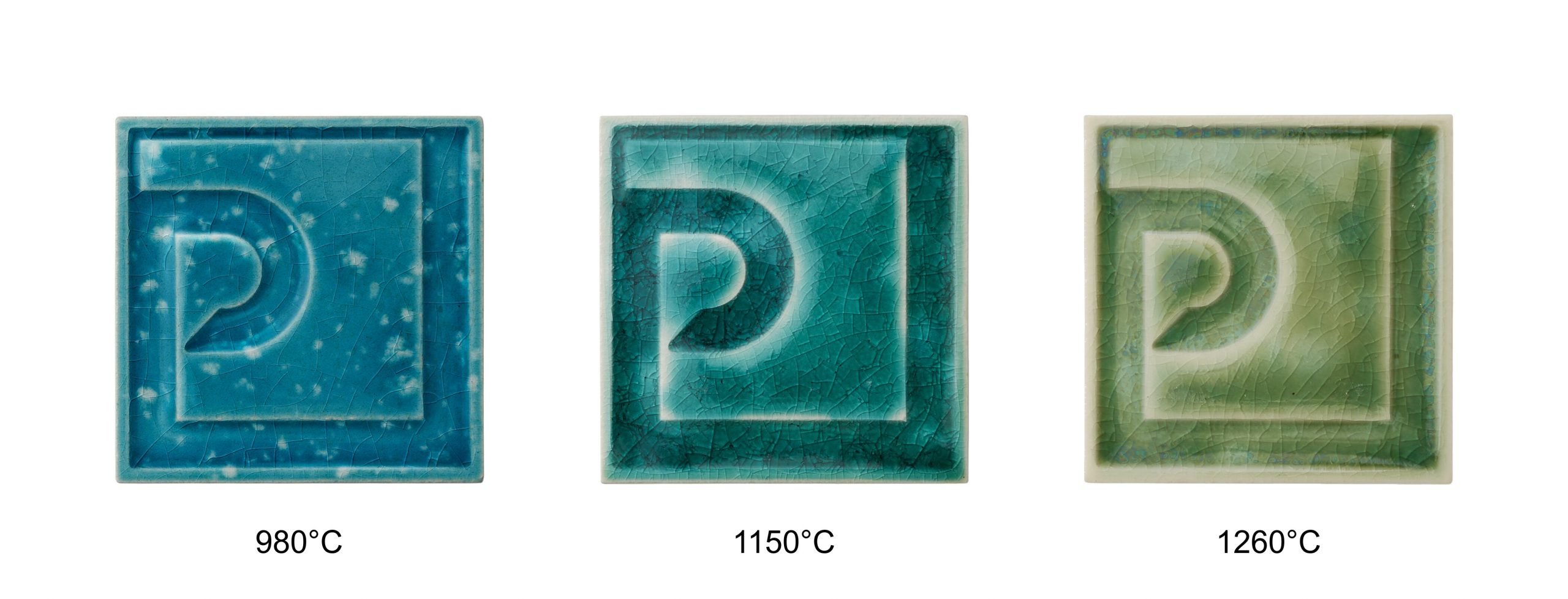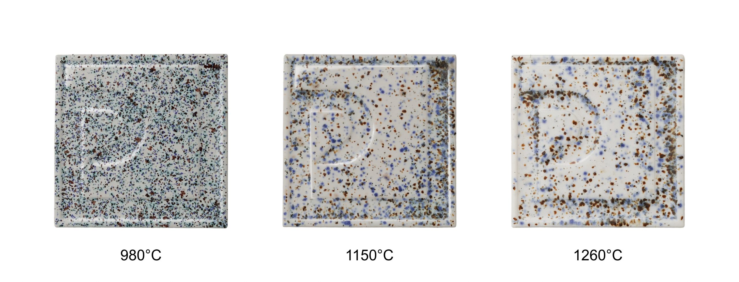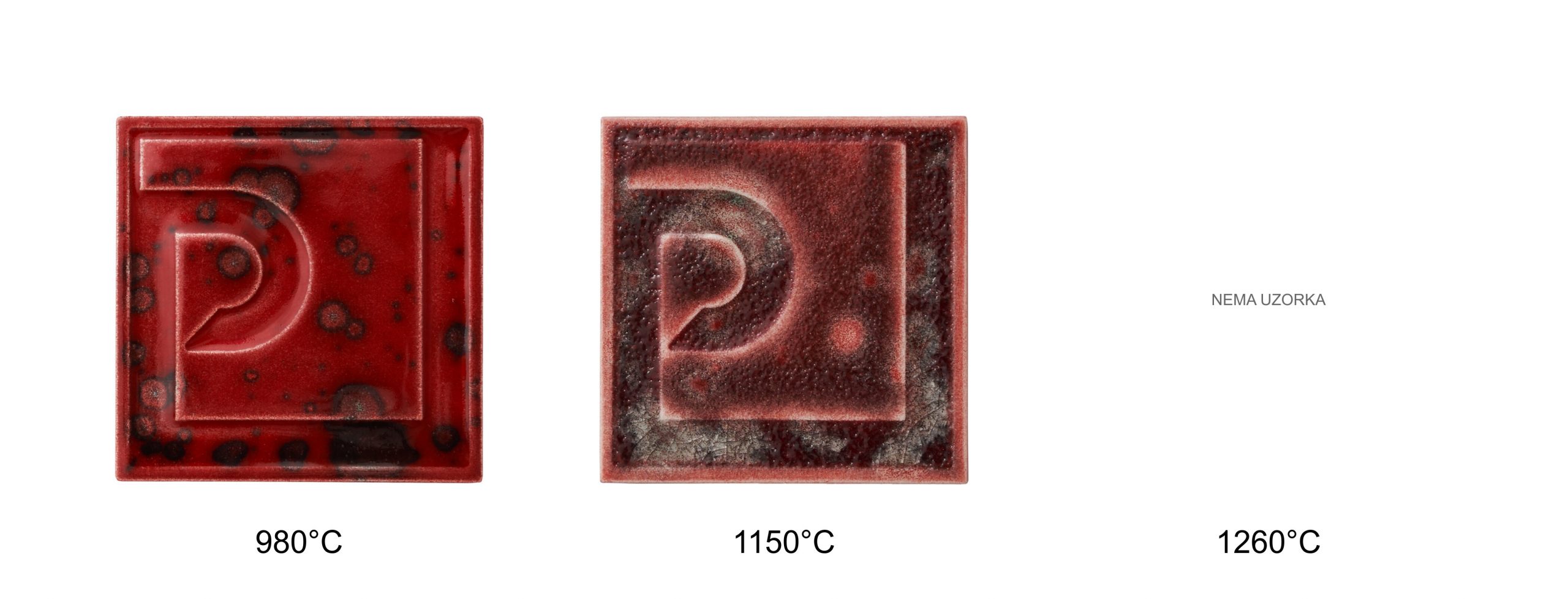 Osnovni raspon pečenja iznosi 980–1080 °C, uz mogućnost promjena efekta na višim temperaturama. Konačni izgled ovisi o podlozi, debljini nanosa i režimu pečenja, stoga se preporučuje probno pečenje.