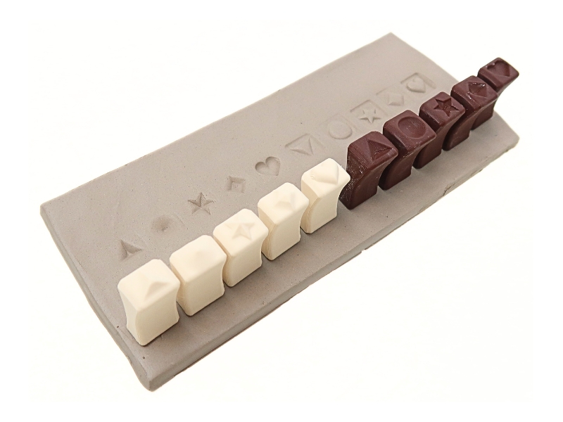 Ukupna ponuda obuhvaća veliki broj različitih modeli žigova, koji omogućuju lako stvaranje reljefa, uzoraka i finih detalja na glini. Savršeni su za rad s mekom i suhom masom. Čisti se jednostavno vodom i mekanom četkicom, bez potrebe za posebnim sredstvima.